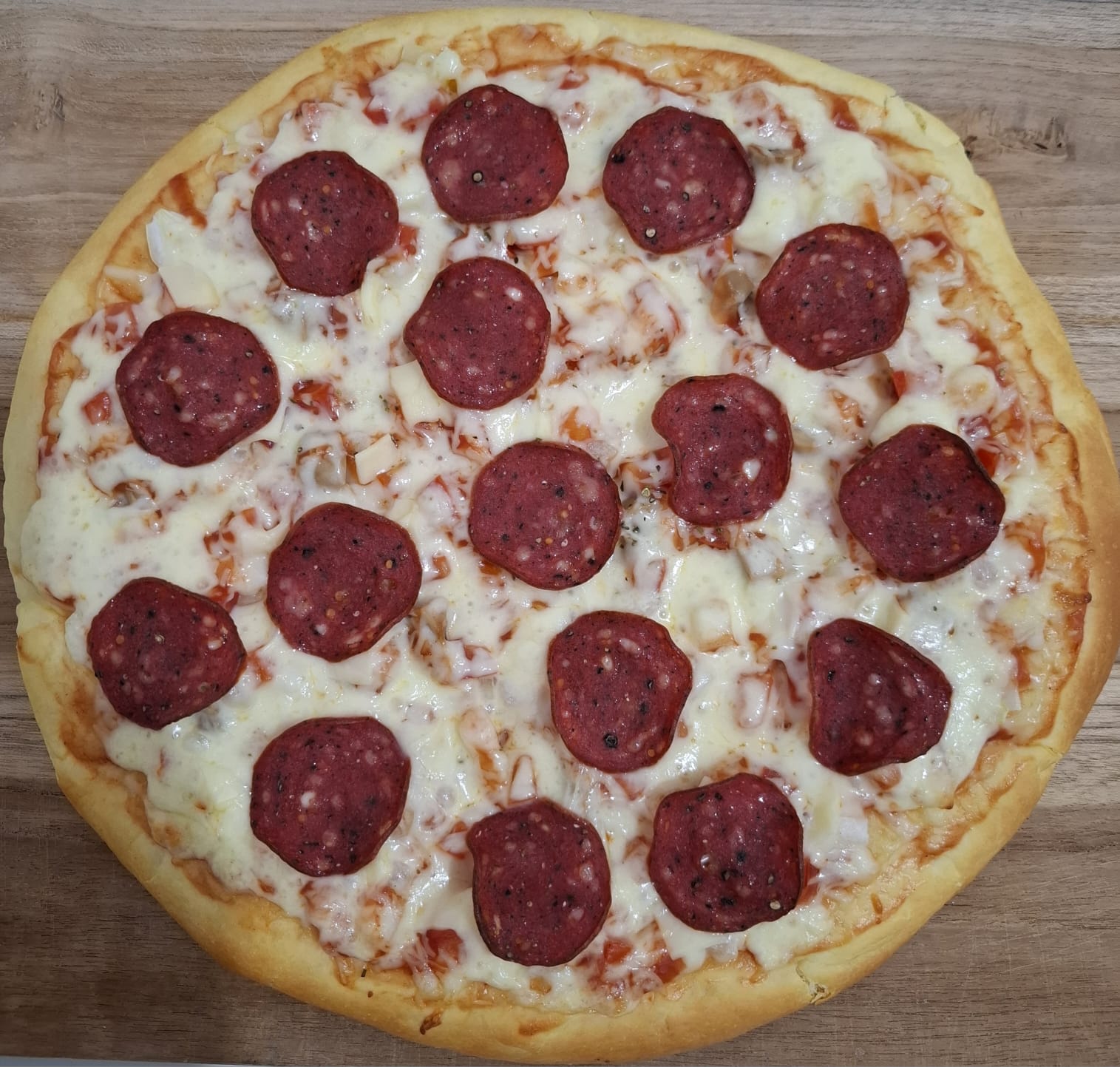 Pizza dengan topping pepperoni pilihan dan berbahan premium.