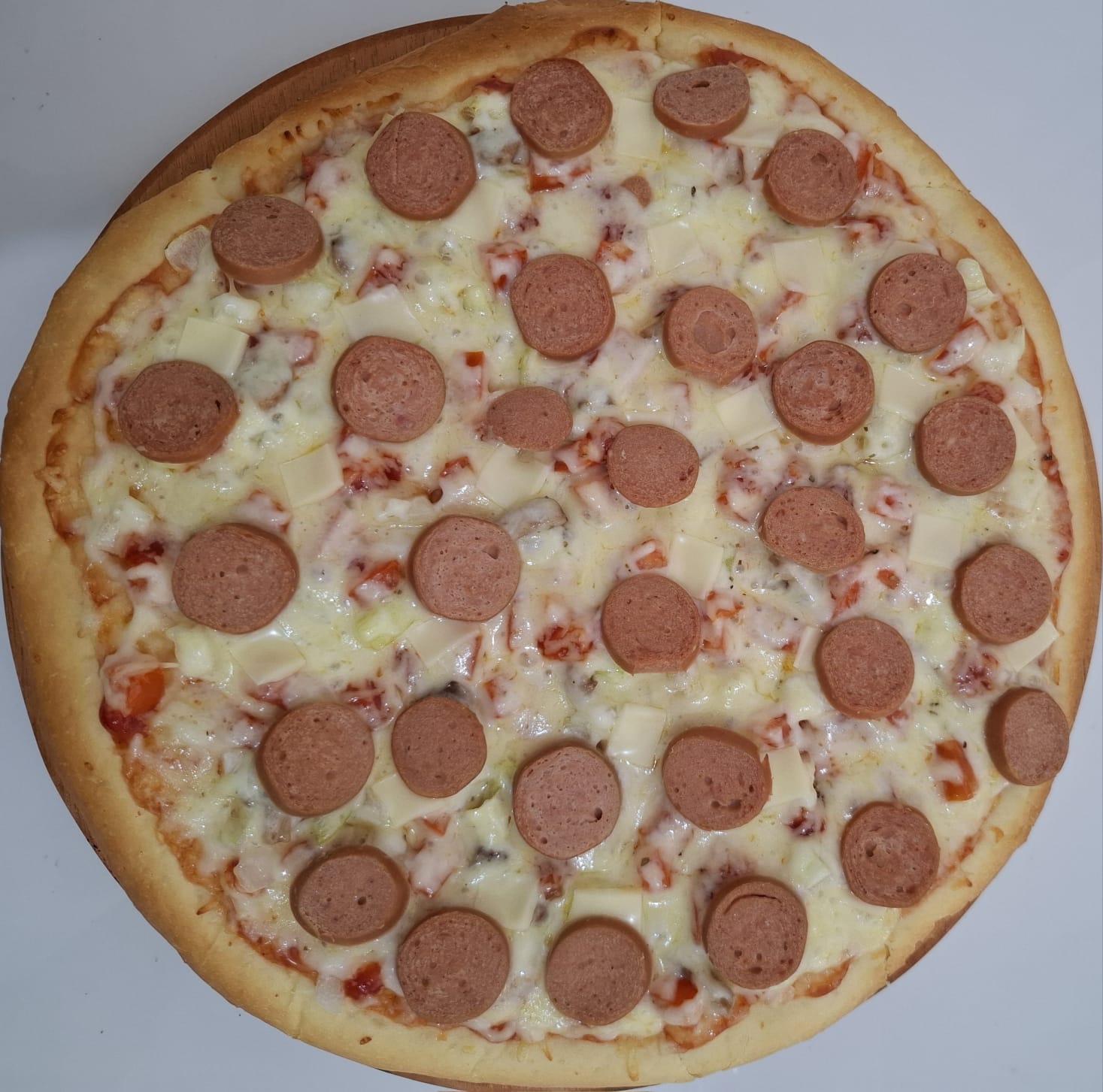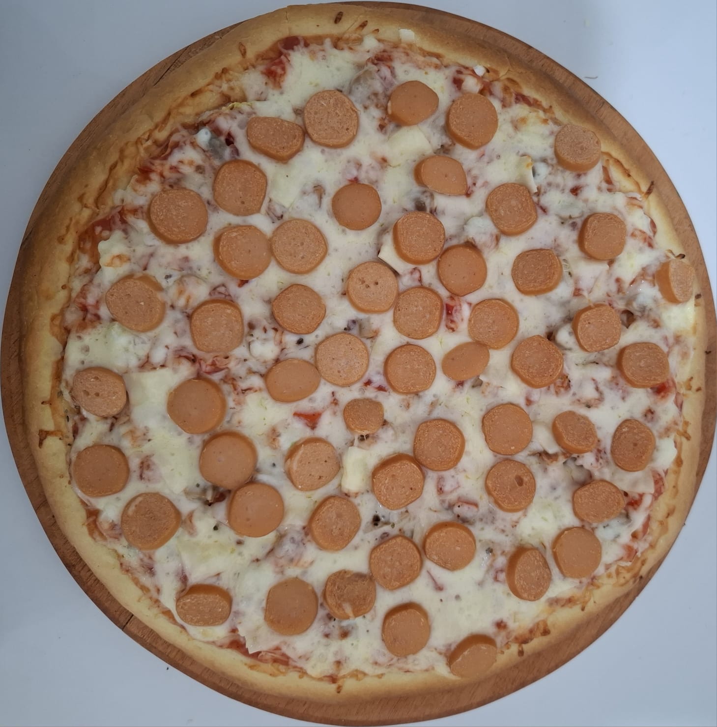 Pizza dengan topping sosis ayam pilihan dan bahan premium.