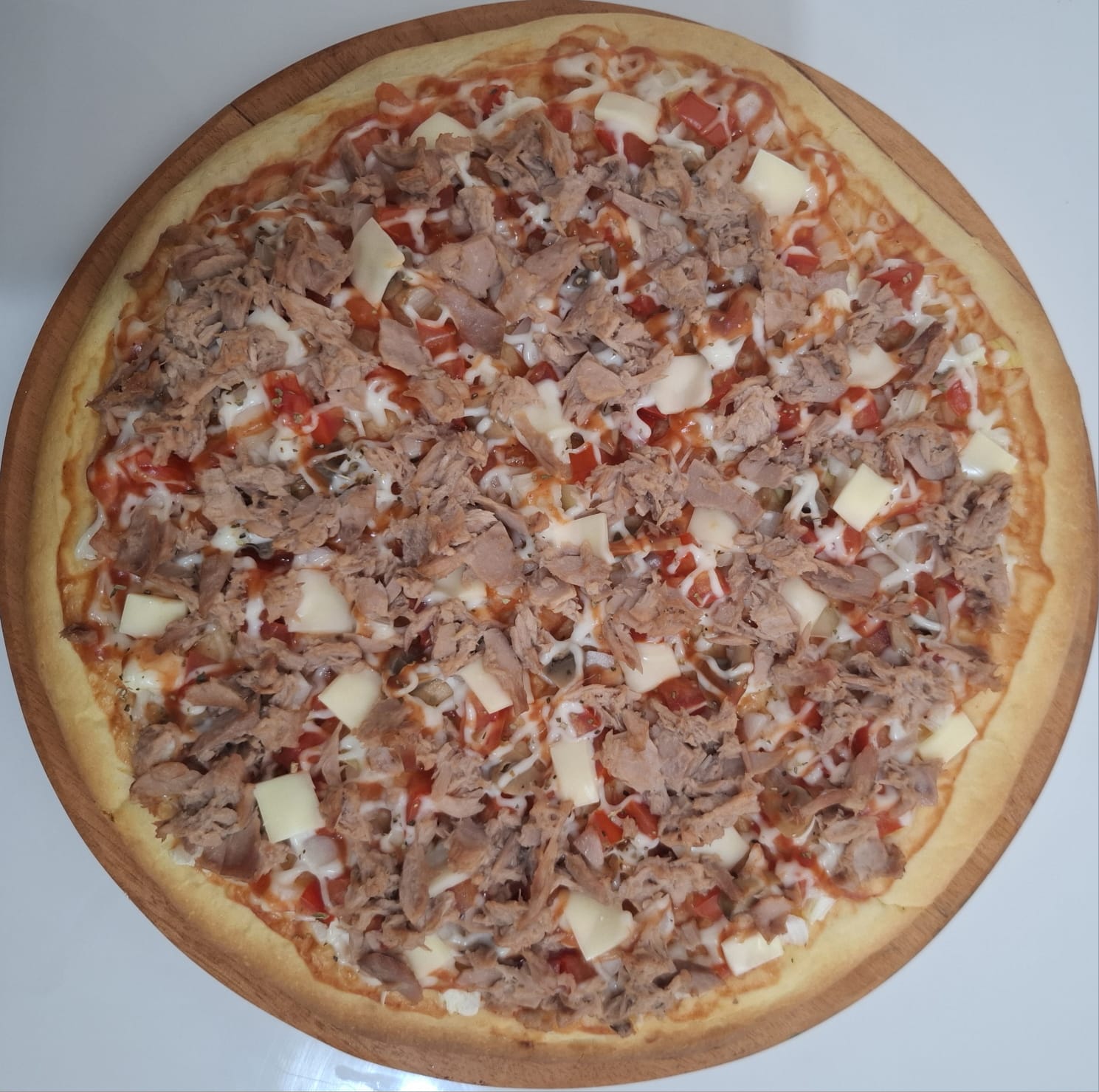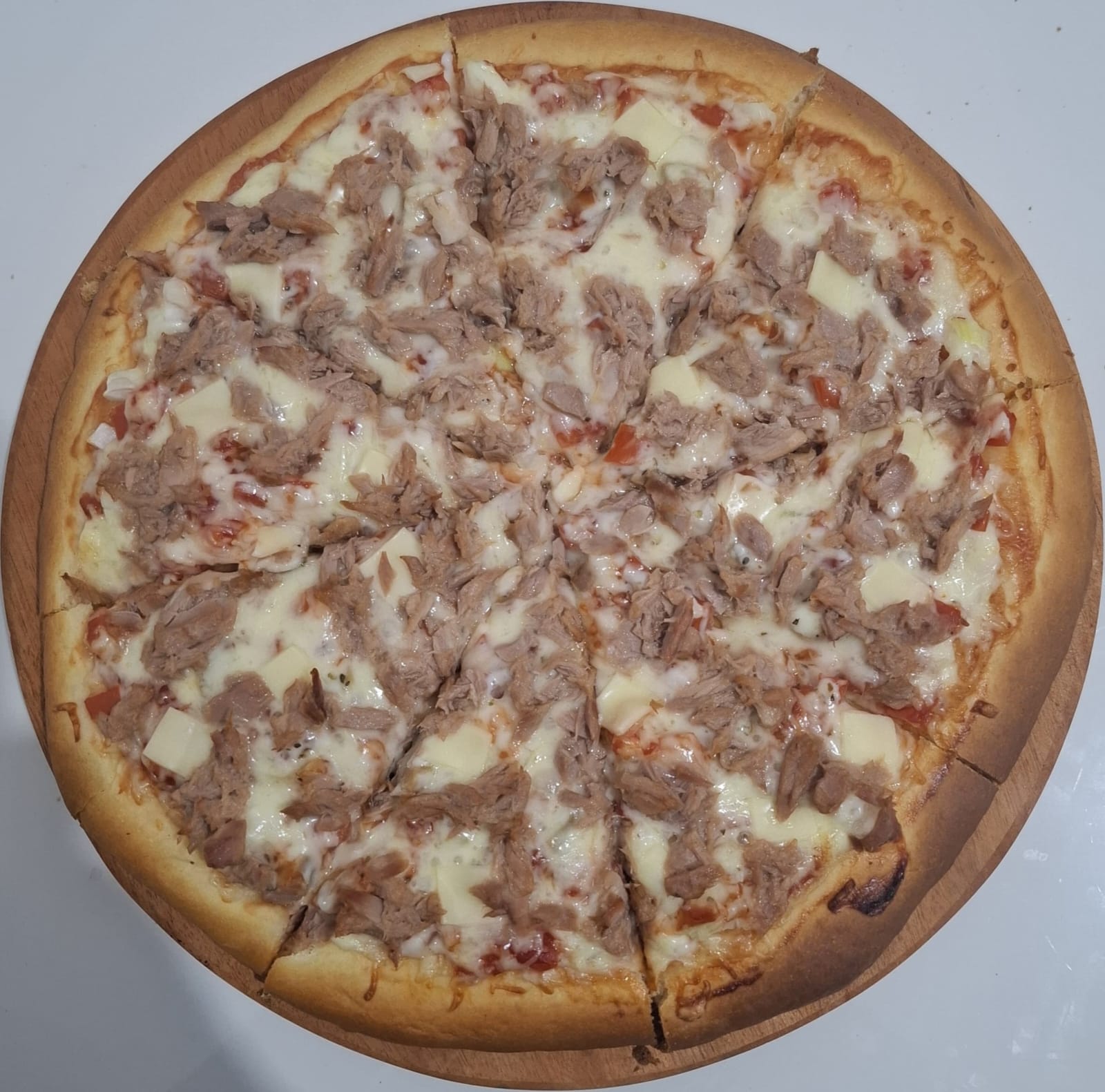Pizza dengan topping ikan tuna pilihan dan berbahan premium.